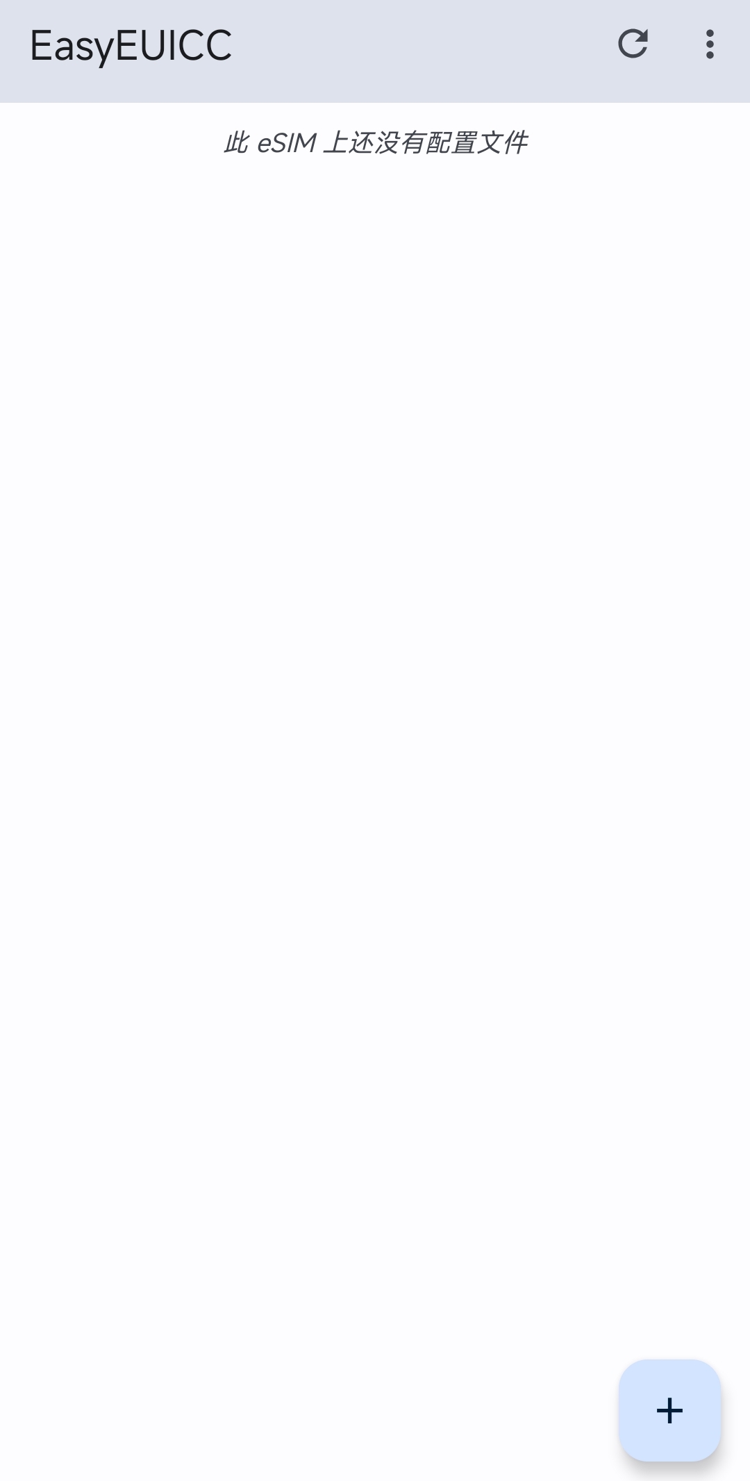上面的务必要注意,不然你就会和我一样被扣钱。言归正传,回到正题,插入euicc后,打开easyeuicc app,我这个是从没写入过esim,所以是空的,点击右下角的+号,扫描刚刚乌龟卡的esim二维码,确认写入的sim卡以及esim信息,就可以写卡了。